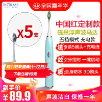 worms电动牙刷成人充电式声波超全自动软毛刷学生党情侣套装男士女 天空蓝 五档位充电款 配(原装5刷头+USB充电线)