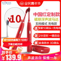 worms电动牙刷成人充电式声波超全自动软毛刷学生党情侣套装男士女 中国红五档位充电款 配(原装10刷头+USB充电线)