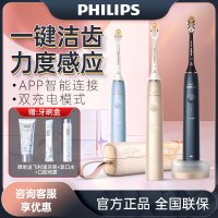 飞利浦(PHILIPS)电动牙刷 成人声波震动钻石系列蓝牙版(自带刷头*4+充电旅行盒+充电玻璃杯) 钛金黑