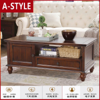 苏宁放心购美式乡村全实木茶几复古怀旧客厅家具欧式小户型环保茶台矮桌1.2mSA 复古棕茶几(1200*600*A-STY