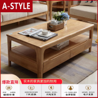 苏宁放心购全实木茶几北欧日式现代简约客厅家具原木色多抽屉双层组合小户型A-STYLE家具