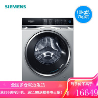 西门子(SIEMENS)10公斤洗烘一体机 全自动变频滚筒洗衣机 蒸汽护理 热风除菌 家居互联 银色