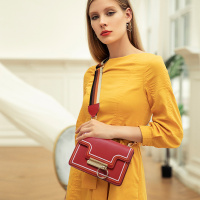 梦特娇包包女新款 真皮单肩包女 撞色拼接 手提小方包 个性潮流 宽肩带斜跨小箱包