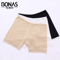 宝娜斯女士蕾丝花边双层加裆防走光三分安全裤性感冰丝无痕打底裤