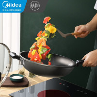 美的喆物 麦饭石色不粘锅炒锅无油烟炒菜锅具电磁炉天然气灶煤气灶通用炊具轻便炒炊具 不粘煎炒锅32CM口径 黑色