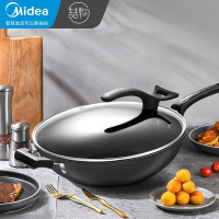 美的(Midea)喆物32cm不粘锅炒锅厚底少油烟仿生荷叶不粘煎炒锅可立盖燃气电磁炉通用 硬氧灰 32CM[加厚]硬氧灰