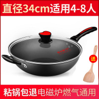 黑色 炊大皇不沾锅炒锅不粘锅家用平底无烟燃气灶适用34cm36大号炒菜锅