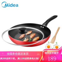 美的28CM不粘煎锅平底锅不粘锅家用煎饼煎蛋牛排锅具电磁炉专用燃气适用 28CM 红色 CJ28Fry301