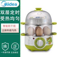 美的煮蛋蒸蛋器自动断电双层家用小型宿舍电蒸锅透视鸡蛋早餐神器 浅绿色
