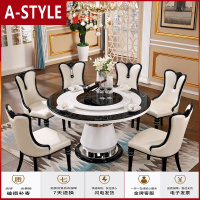 苏宁放心购欧式大理石圆形餐桌椅组合黑白色简约现代带转盘饭桌别墅轻奢圆桌A-STYLE