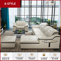 苏宁放心购真皮沙发 简约现代小户型调节功能皮艺沙发 L型客厅黑白色皮沙发A-STYLE家具
