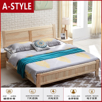 苏宁放心购床实木现代简约单人床1.2米家用松木1.5/1.8m出租房简易双人 床架A-STYLE家具