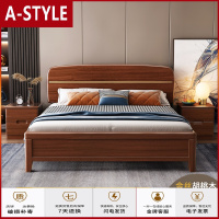 苏宁放心购现代中式实木床简约轻奢卧室家具1.5m北欧胡桃木双人床1.8米婚床A-STYLE
