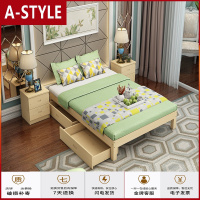 苏宁放心购实木床简约1.5米床1.8双人床主卧出租房经济型1.2m单人原木松木床A-STYLE家具