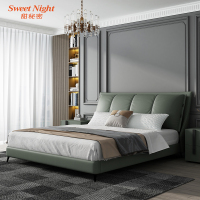 Sweetnight苏宁自营主卧轻奢床主卧大床北欧床真皮床实木软包床1.8米1.5米皮床