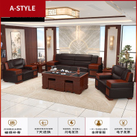 苏宁放心购真皮办公沙发茶几组合中式现代简约会客三人位老板商务接待室沙发A-STYLE家具