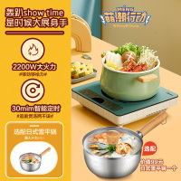 美的电磁炉家用智能小型火锅炒菜锅一体迷你大功率电池炉套装 [清新绿]-带锅