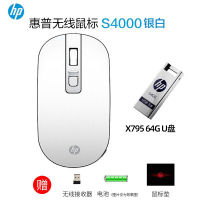 hp惠普S4000无线鼠标台式电脑办公笔记本家用无线鼠标银白色静音鼠标+惠普64GB优盘U盘