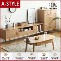 苏宁放心购北欧实木电视柜茶几组合简约现代地柜白橡木电视柜日式客厅家具A-STYLE