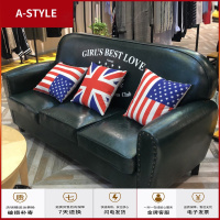苏宁放心购美式酒吧皮质沙发复古皮三人小户型简约个性单双两人服装店铺定制A-STYLE家具
