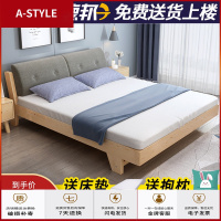 苏宁放心购实木床现代简约家用1.5米主卧出租房1.2单人床1.8m简易北欧双人床A-STYLE家具