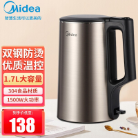 美的 电水壶MK-PJ17A01 家用1.7L烧水壶双钢防烫防干烧热水壶 304不锈钢开水壶