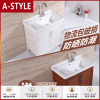 苏宁放心购太空铝洗衣柜陶瓷洗衣盆带搓衣板阳台落地浴室柜洗衣池洗脸盆台盆A-STYLE