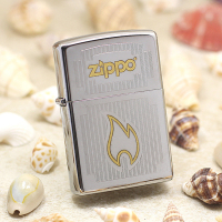 美国ZIPPO打火机 芝宝 镜面雕刻金商标 经典火焰24206 男士礼品