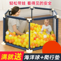 智扣婴儿童游戏围栏宝宝爬行垫学步栅栏室内游乐场幼儿防护栏家用 加大蓝(六边形)200个球5.5CM+垫
