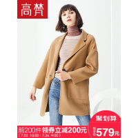 高梵(GOLDFARM)秋冬韩版羊毛双面呢大衣女落肩袖中长款驼色呢子大衣