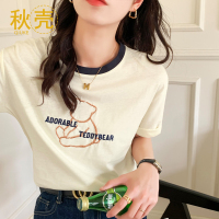 秋壳纯棉白色t恤女短袖2022新款宽松夏季薄款上衣韩版宽松体桖ins