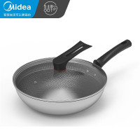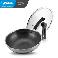 美的(喆物)不锈钢蜂窝炒锅防粘锅少油烟带盖炒菜锅电磁炉燃气煤气通用 32口径316不锈钢