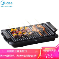 美的(Midea)烧烤炉家用无烟电烤炉烤肉盘韩式不粘烤肉锅烤串机室内电烤盘 吃货新宠|无烟烧烤