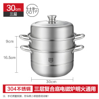 美的喆物蒸锅家用304不锈钢加厚锅双多3三层电磁炉燃气灶多功能大蒸笼 [304不锈钢/30cm] 26cm