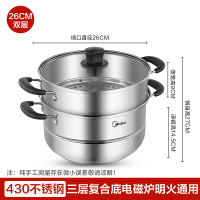 美的喆物蒸锅家用304不锈钢加厚锅双多3三层电磁炉燃气灶多功能大蒸笼 *{玻璃盖-430不锈钢}/26cm 26cm