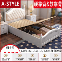 苏宁放心购美式实木床1米1.2m1.35单人储物床小户型软靠轻奢公主一米二2五宽A-STYLE家具