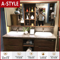 苏宁放心购新中式浴室柜组合橡木双盆美式卫生间洗手洗脸洗漱台仿古卫浴柜A-STYLE
