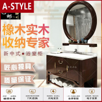 苏宁放心购现代新中式浴室柜组合落地黑白色橡木北欧卫浴柜洗手大理石台盆柜A-STYLE