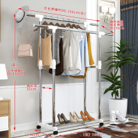 晾衣架晾晒架落地伸缩不锈钢移动简易双杆式法耐室内凉衣服架子阳台挂晒衣架 舒适款(白色)-带刹车轮 1个