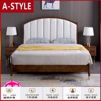 苏宁放心购北美黑胡桃木实木床北欧全双人婚床1.8米1.5m主卧室家具简约真皮A-STYLE家具