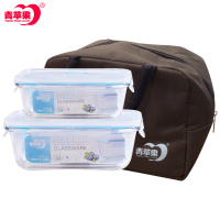 青苹果玻璃保鲜盒长方形大容量耐热便当盒 微波炉加热饭盒玻璃碗套装EK1303/EK1302B