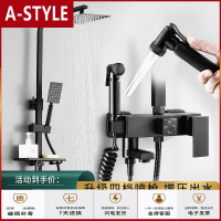 苏宁放心购黑色淋浴花洒套装全铜主体龙头四档花洒喷头挂墙式淋浴器北欧风A-STYLE