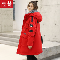 高梵工装羽绒服女中长款新款连帽白鸭绒冬季宽松收腰款加厚