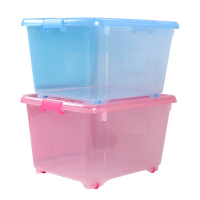 茶花(CHAHUA)[55L精巧收纳箱3只装]2825*3塑料储物箱收纳盒整理箱带滑轮 透明橙