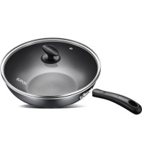 美的(Midea)炒锅 多功能炒菜锅不锈炒锅无涂层家用电磁炉燃气灶煤气明火适用32cm精铁锅 [带盖]