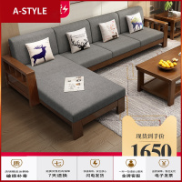 苏宁放心购实木沙发组合现代中式橡胶木简约布艺沙发转角小户型沙发A-STYLE家具