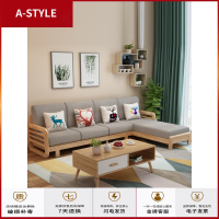 苏宁放心购北欧全实木沙发组合贵妃转角木布艺沙发小户型客厅木制沙发带拉床A-STYLE家具
