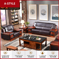 苏宁放心购办公沙发中式商务会客接待沙发真皮三人位老板办公室沙发茶几组合A-STYLE家具