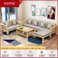 苏宁放心购全实木沙发小户型客厅中式木质家具转角三人沙发组合松木沙发布艺A-STYLE家具