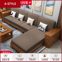苏宁放心购实木沙发组合现代新中式转角可拆洗布艺沙发大小户型客厅整装家具A-STYLE家具